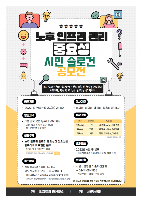 시민 공모전은 ‘노후 인프라 관리의 중요성과 필요성을 담은 슬로건’의 주제로 5월 27일까지 열린다.