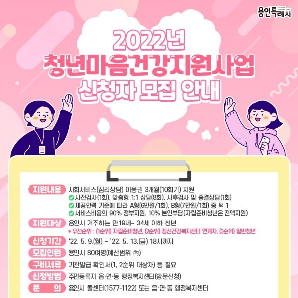 보건복지부와 시가 함께 추진하는 이번 사업은 우울, 불안, 강박 등 청년들이 겪고 있는 심리·정서적 고민을 함께 해소하기 위해 전문심리상담을 지원하는 사업이다.