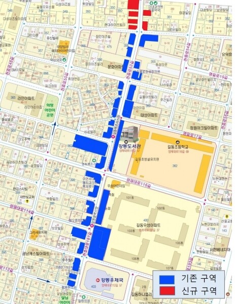 길동복조리시장의 경우에는 6개 신규지번이 확대 인정되어 기존 8,124.2㎡ 규모의 시장 면적이 9,442.1㎡로 확대됐고 명일전통시장의 경우에는 7개 신규지번이이 확대 인정되어 기존 3,648.9㎡의 시장 면적이 5,146.3㎡로 확대됐다.
