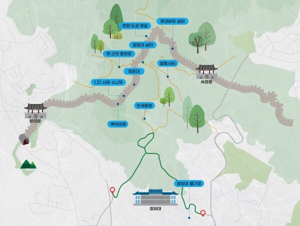 한양도성 옆길에서는 시대별 축성기법에 대한 지식을 쌓고 백악마루에서는 1976년 청와대 상공에 미확인 비행물체가 진입했던 사건을 배경으로 한 UFO 격추 게임도 체험 가능하다.