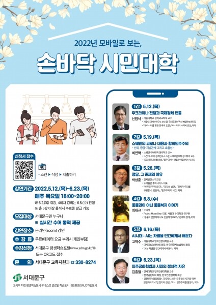 사전 신청한 서대문구민이면 누구나 무료로 수강할 수 있으며 5강 이상 참석자는 수료증을 받는다.