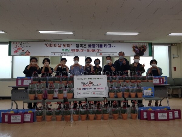 지역사회보장협의체 위원들은 카네이션 화분을 직접 만들어 혼자 사시는 어르신 20가구를 찾아 카네이션을 전달하고 안부를 물으며 공경과 이웃사랑을 함께 전했다.