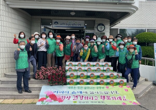 이번 행사는 어버이날을 맞이해 감사의 마음을 전하기 위해 준비했으며 지난 설 명절 강상면 새마을회 모듬전 판매 수익금으로 재원을 마련했다.