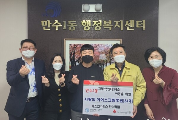 베스킨라빈스 만수역점은 이번 후원을 시작으로 월 1회 만수1동 지역아동센터 이용 아동들에게 지속적으로 아이스크림을 후원할 예정이다.