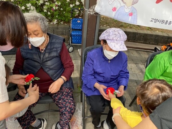 1단지 LH주거행복지원센터에서 준비한 카네이션과 떡을 어르신들께 나눠드리고 건강상태를 확인하는 등 안부를 묻고 함께 사진도 찍으며 이웃 간 정을 나눴다.