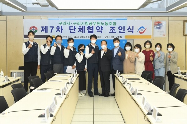이날 단체협약은 지난해 11월 24일 구리시청 공무원노조가 요구한 단체교섭안을 구리시에서 부서별 검토를 마친 후 2월 23일 상견례를 시작, 총 5차에 걸친 실무교섭을 통해 최종 합의해 조인했다.