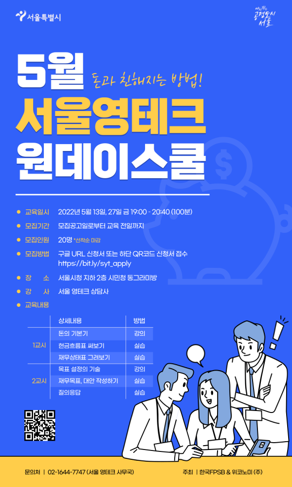 지난 4월 29일 ‘서울 영테크 원데이 스쿨’ 파일럿 프로그램을 열었고 20명 모집에 신청자가 300명이 몰릴 정도로 그 열기가 뜨거웠다.