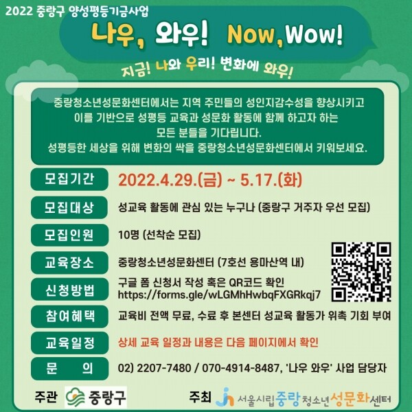 교육은 중랑청소년성문화센터에서 운영하며 교육비는 전액 무료다.