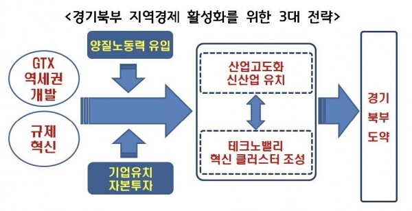구체적으로 기존 ‘양주·포천·동두천 글로벌 섬유·가죽·패션 산업특구’ 지역에 연구·개발센터를 설립해 관련 기업들과 연계성을 강화하고 남양주·파주·포천 등 가구 사업체가 다수 분포하는 지역에 가구산업 혁신클러스터를 조성해 기업 간 네트워크를 형성하고 평화경제특구 사업으로 남북경협거점을 구축하자고 했다.