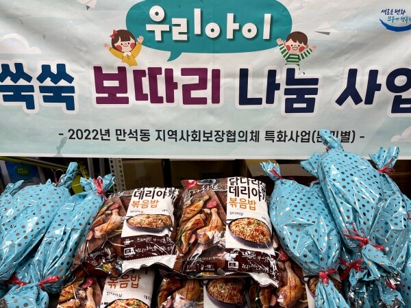 우리 아이 쑥쑥 보따리 나눔 사업은 3월 출범한 ‘만석동 보따리꾼’사업 중 하나인 2분기 ‘우리 아이 쑥쑥 보따리 나눔’ 사업으로 간편하게 조리해서 먹을 수 있는 밀키트를 분기별로 제공해, 한부모 및 저소득층 아동에 대한 돌봄 공백이 발생을 예방하고 아이들의 건강한 생활을 도모하고자 기획됐다.