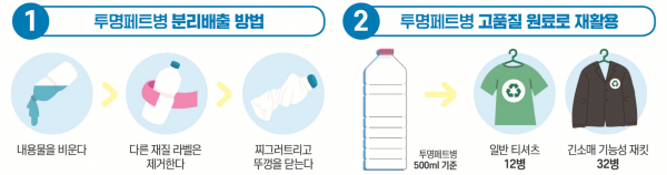 우리나라의 경우 고품질 재활용 원료 부족으로 연간 2.2만톤의 폐페트를 수입하고 있는 실정으로 투명페트병의 경우 별도 분리배출하게 되면 고품질 재활용 원료로 사용이 가능하다.