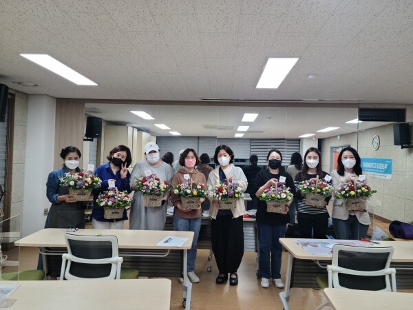 코로나 팬데믹으로 지금까지 대면 프로그램 운영이 어려웠지만, 일상으로 복귀가 점차 진행되고 있는 상황에서 이번 카네이션 꽃바구니 만들기 프로그램과 같은 관고동 ‘원데이 평생학습 프로그램’에 대한 인기가 높아지고 있다.