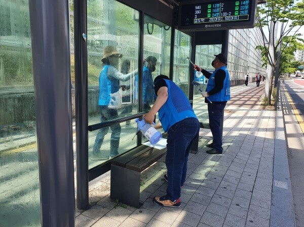[뉴스써치] 평택시 바르게살기위원회 비전2동분회는 10일 회원 10여명이 모여 비전2동 일대의 다중이용시설 방역 및 책임구역 환경정비를 펼쳤다.