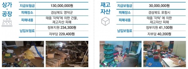 가입자는 가입 기간 태풍, 호우, 홍수, 지진, 대설, 강풍 등 광범위한 자연재해 피해에 대해 보상받을 수 있다.