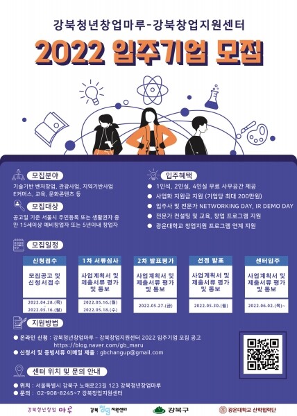 입주 희망자는 오는 16일 오후 5시까지 강북청년창업마루 블로그에서 온라인으로 신청하면 된다.