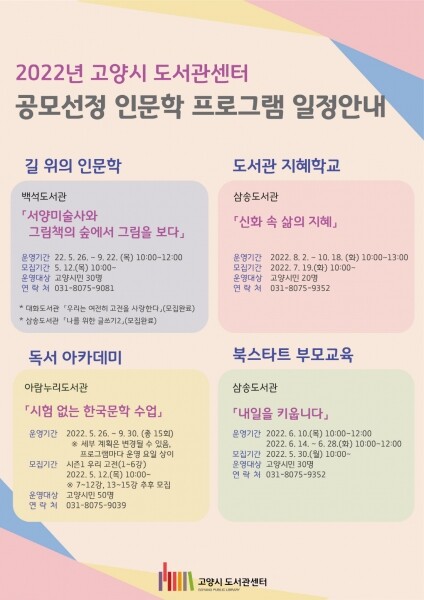 삼송도서관은 ‘도서관 지혜학교’ 공모에 선정돼 ‘신화 속 삶의 지혜’ 프로그램을 운영한다.