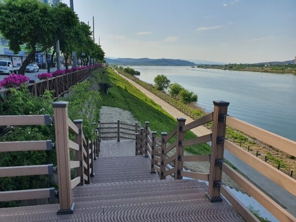 남한강변 도로는 여주대교에서 하동 세종병원과 양섬을 거쳐 여주보와 이포보는 물론 양평 서울까지 연결되는 도로로써 4대강 사업 시 설치된 연결로 외에 ‘21년 시청 뒤 연결계단이 추가로 설치됐고 금년 상동 일원에 연결계단이 추가적으로 설치됐다.