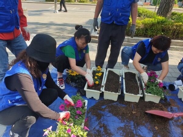이번 꽃심기 행사는 도로변 미관 조성은 물론 코로나19로 인해 침체되었던 거리에 활기를 불어넣기 위해 길거리 화분 10여 개에 장미, 베고니아 등 10여 종의 꽃을 심는 행사로 진행됐다.
