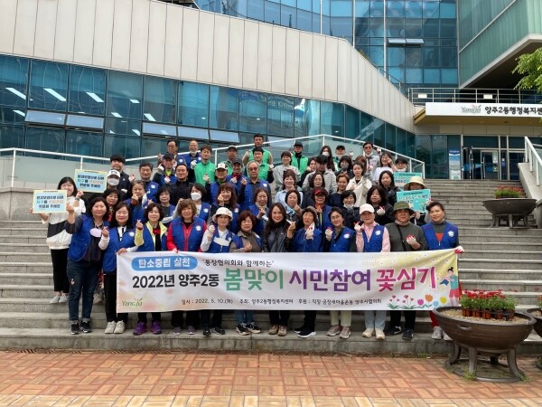 송미애 양주2동장은 “바쁘신 중에도 시간을 내주신 통장협의회와 직장·공장새마을운동양주시협의회, 지역주민들에게 진심으로 감사드린다”며 “앞으로도 양주2동은 아름다운 도시, 탄소 없는 도시 만들기에 적극 앞장서겠다”고 말했다.