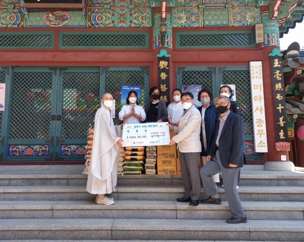 미타사 정민 주지스님은 “작은 정성이지만 어려운 시기를 겪고 있는 이웃에게 힘을 보태고자 한다 코로나19로 주춤했던 일상이 회복되고 우리 모두가 힘들었던 마음도 회복이 되었으면 좋겠다”는 뜻을 전했다.