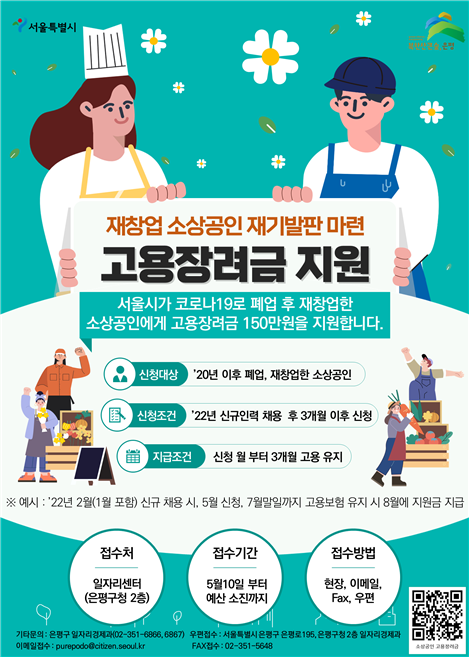 신청은 예산 소진할 때까지 받으며 은평구청 2층 일자리센터로 방문하거나 전자우편·팩스·우편으로 신청하면 된다.