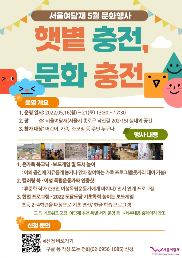 서울시가 운영 중인 여성역사공유공간 서울여담재는 코로나19 이후 위축된 야외 문화행사 및 프로그램을 기획, 5월 16일부터 21일까지 진행한다.
