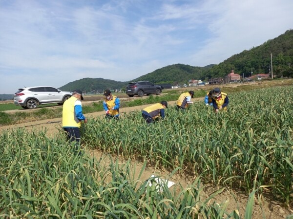 적성면 실버경찰대는 코로나 19 장기화로 외국인노동자 유입 감소로 일손이 부족한 농가에 일손을 보탰다.