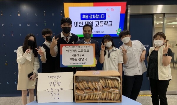 지난 11일 이천제일고등학교 식품가공과 학생들은 이천시노인종합복지관을 직접 방문해 어버이날 맞이 ‘수제 단팥빵’을 기부했다.
