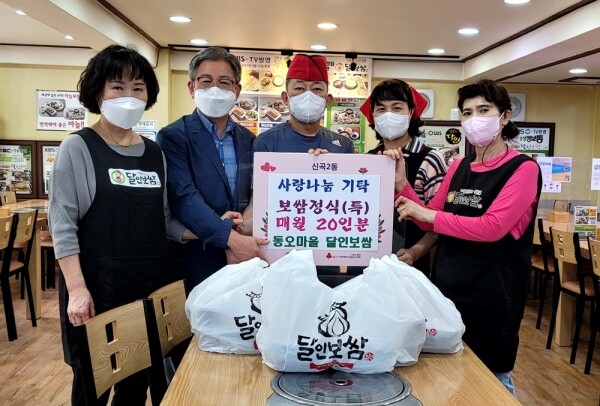 신곡2동 동오마을 내에 소재하고 있는 달인보쌈이 4월부터 월 2회 보쌈정식 10인분을 저소득 취약가구 학생의 건강한 성장을 지원하기 위해 신곡2동주민센터에 기탁하고 있다.
