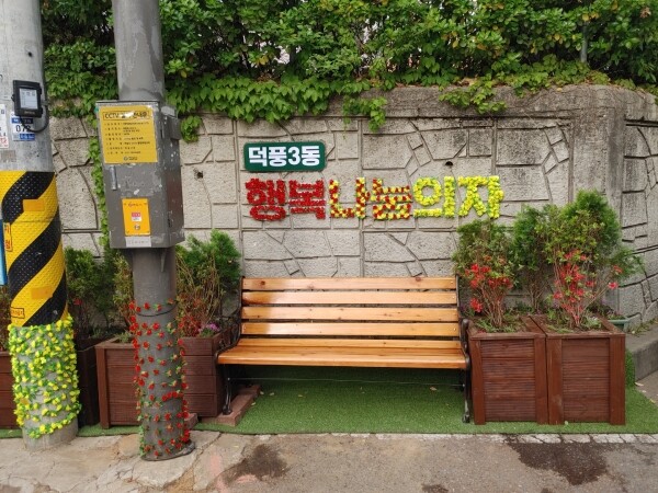 이에 덕풍3동 행복마을관리소 지킴이들은 근본적인 해결을 위해 1개월 동안 방치된 쓰레기를 정리하고 의자와 화분을 제작해 설치했다.