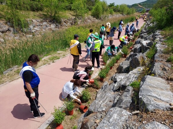 이번 환경정화활동을 통해 약 3km의 산책로 주변에 꽃나무를 심고 쓰레기를 주워 더욱 쾌적한 배곧천 조성에 힘을 모았다.