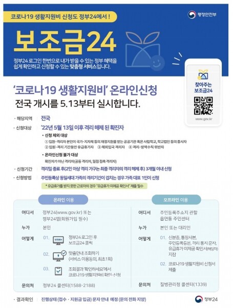 코로나19 확진자 급증 및 생활지원비 접수·처리에 따른 시민불편 및 업무부담을 경감하기 위해 시행하는 것으로 신청대상은 2022년 5월 13일 이후 격리 해제된 확진자이다.