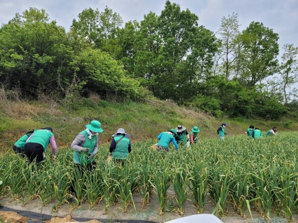 지난 11일 50여명의 새마을 회원들은 일손 부족으로 어려움을 겪는 마늘 농가를 찾아 잡초 제거, 마늘종 수확 등의 작업을 지원했다.