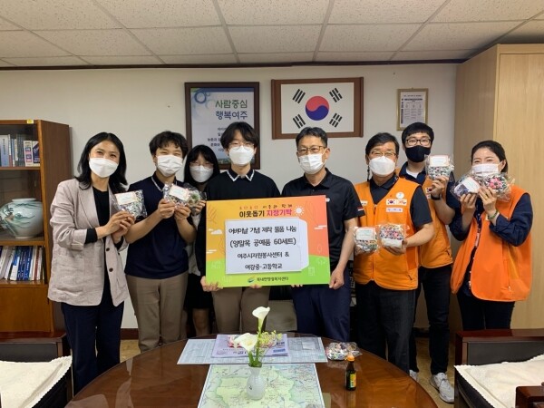 이번 기탁은 여주시자원봉사센터와 여강중·고등학교가 함께 탄소중립과 환경보호에 관심을 가지고 참여하는 업사이클링 봉사의 하나로 양말을 만들 때 생기는 의류 폐기물인 양말목을 활용해 꽃 브로치, 컵 받침대, 냄비 받침대를 만들었으며 이에 북내면도 학생들에게 감사한 마음에 답하고자 간식을 준비해 전달했다.