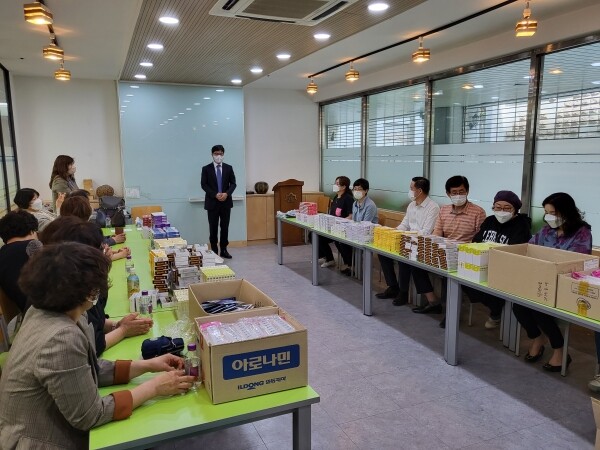 특화사업으로 진행하는 ‘코로나19 극복, 취약계층 건강지원 사업’에 필요한 사전준비 작업으로 지난 11일 코로나19 상비약 200세트를 포장했다.