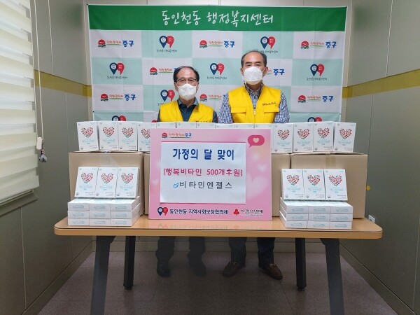 동인천동 행정복지센터로 전달된 비타민 500개는 관내 저소득 아동, 장애인, 독거 어르신 등에게 전달될 예정이다.