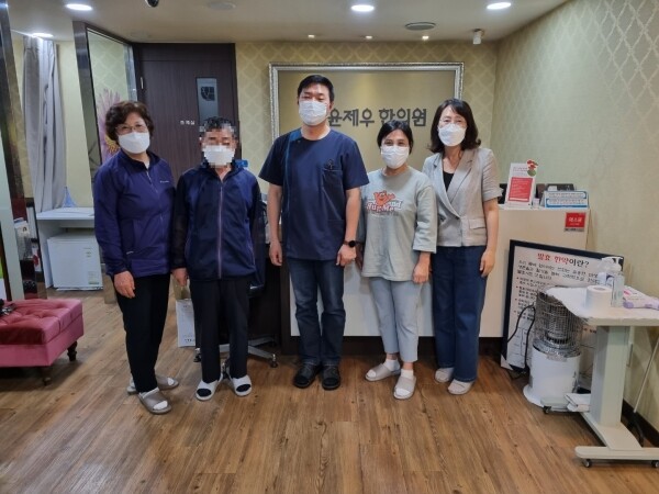 이 사업은 관내 한의원인 ‘윤제우한의원’과 연계해 한방치료가 필요한 어르신들에게 의료상담 및 물리치료 등을 무료로 지원하는 사업으로 저소득 어르신의 건강관리를 통해 의료비 부담을 낮추고 건강한 삶을 지원하는 데에 그 목적이 있다.