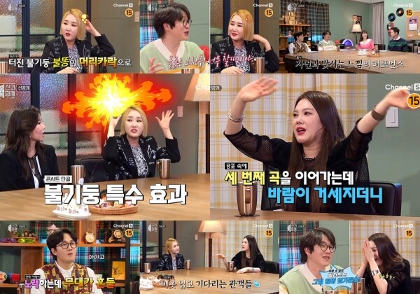 머리카락과 엉덩이에 불이 붙고 태풍 속 흔들리는 무대 위에서 관객들을 위해 최선을 다한 이들의 웃픈 이야기에 입을 다물지 못한 MC들의 반응이 눈길을 모은다.