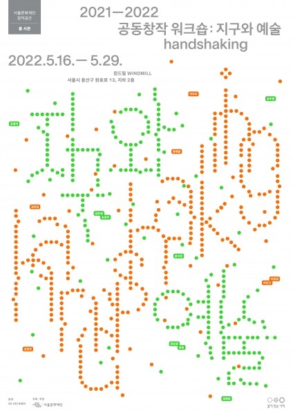 ‘지구와 예술_핸드셰이킹’은 서울문화재단이 운영하는 창작공간 잠실창작스튜디오, 금천예술공장, 서울무용센터, 신당창작아케이드 등 네 곳의 전·현 입주 예술가 14명이 참여해 여러 감각과 매체로 함께 협업한 프로젝트의 결과물을 만나볼 수 있는 전시다.