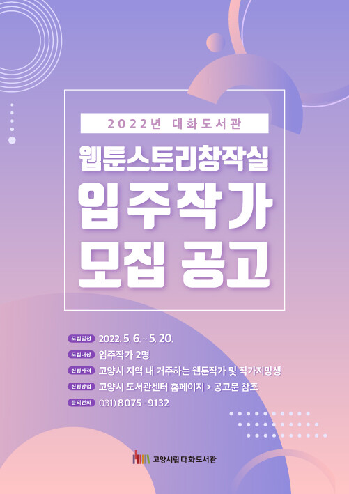 고양 대화도서관, 2022년 웹툰스토리창작실 입주작가 모집