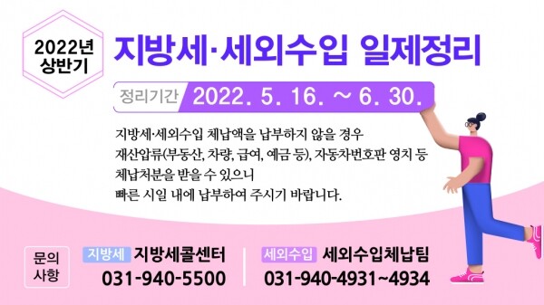 파주시는 일제정리 기간 동안 부동산, 차량 등 재산 압류 및 공매 금융자산 압류 및 추심 체납차량 번호판 영치 체납관리단을 활용한 맞춤형 징수 등을 중점적으로 추진하며 지방세를 고의적으로 포탈한 경우에는 범칙사건 고발 등 강력하게 대처해 체납액을 최소화 할 계획이라고 전했다.