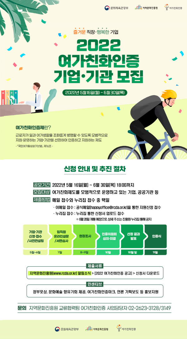 아울러 6월 2일 오후 2시에는 여가친화인증 온라인 설명회를 열어 여가친화인증 사업과 신청 등을 안내한다.