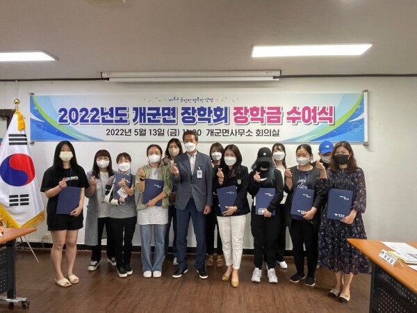 올해 장학회는 개군면 내에 주소를 두고 계속 거주하는 주민의 대학생 자녀 중 신입생 전원, 성적우수 재학생 등 17명에게 1천 6백만원의 장학금과 장학증서를 전달했다.