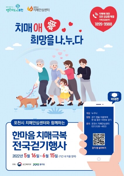 보건복지부와 경기도가 주최하고 경기도 광역치매센터와 포천시가 공동 주관한 이번 행사는 치매에 대한 부정적인 인식 개선하고 치매예방에 좋은 걷기운동을 실천하는 등 치매에 대한 관심 촉구를 위한 행사다.