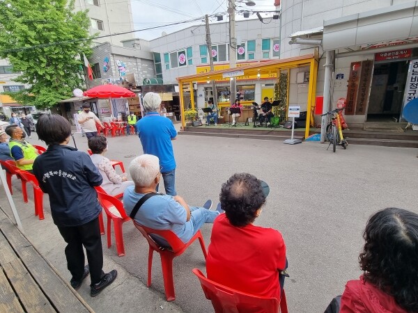 이번 공연은 덕풍3동 행복마을관리소와 덕풍시장 상인회가 연계해 진행한 것으로 3인조 그룹 투게더팀이 오후 5시부터 1시간 동안 공연을 했다.