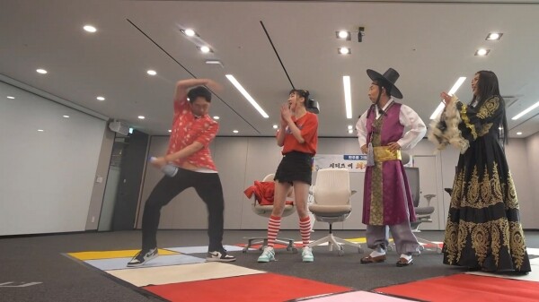 본격적인 게임에 앞서 거상단과 남사당패는 선공과 후공을 정하는 스트레칭 댄스 배틀을 펼친다.