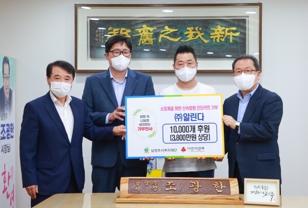㈜알린다는 OEM 제작 및 무역 대행을 하며 진단 키트, 마스크, 판촉물을 전문으로 판매하는 도·소매 업체로 ㈜알린다가 이번에 후원한 코로나19 신속 항원 진단 키트는 남양주시 내 희망케어센터 4개소를 통해 복지 사각지대에 놓인 소외계층에게 전달될 예정이다.