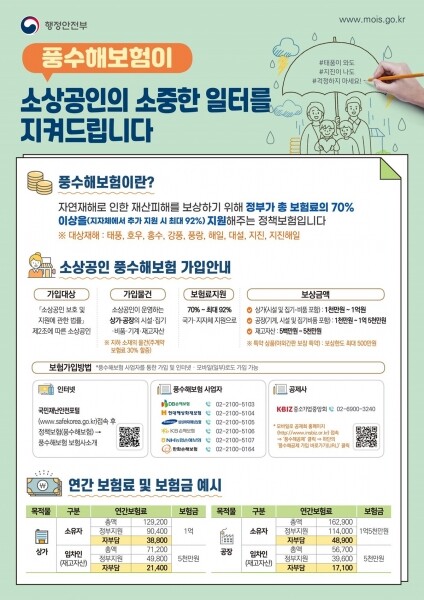 풍수해보험은 읍·면·동 행정복지센터 또는 6개 민영보험사를 통해 가입 가능하다.