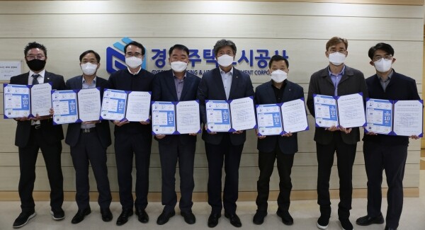 GH는 지난 10일 본사 사옥에서 진행된 선포식에서 전형수 GH 부사장을 비롯한 최고 경영진들이 직원의 워라밸 향상과 근무방식 혁신을 다짐했다.