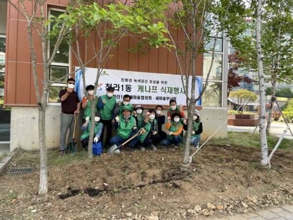 청라1동은 이날 행사에서 새마을 회원 등 20여명이 참석해 흙 고르기와 케나프 이식에 구슬땀을 흘렸다.